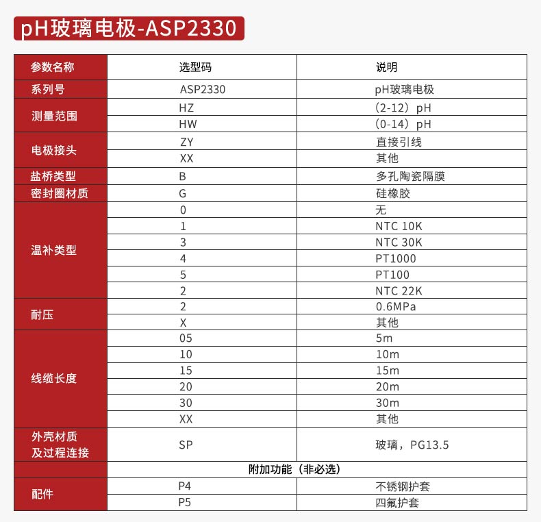 产品描述:pH 玻璃电极是由玻璃指示电极和银/氯化银参比电极组合在一起的复合电极,作为 pH 值测量传感器广泛应用于测量水溶液中的 pH 值。使用场景:特殊环境,比如化学在线、强酸强碱环境。