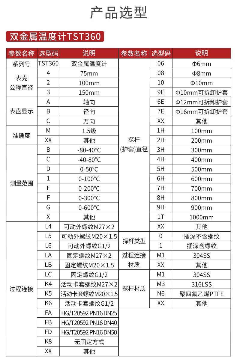 产品名称:美仪_TST360双金属温度计 轴向型_响应迅速、不挑介质