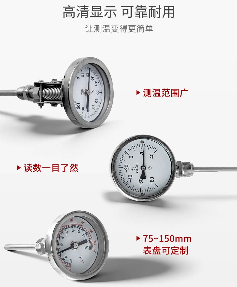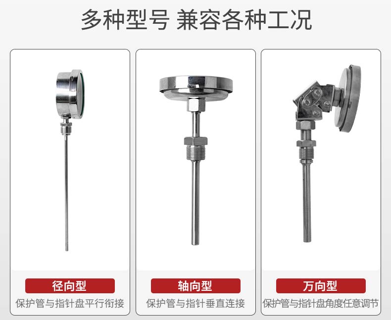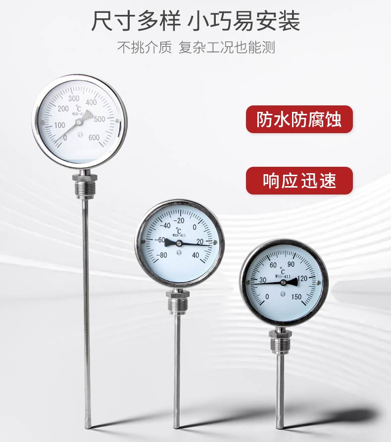 产品描述:杭州美仪仪表专业生产不锈钢径向、轴向、万向工业用双金属温度计可用于窑炉、烤箱、管道,测量气体、液体、蒸汽的温度