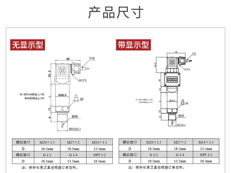 产品名称:美仪_P202一体化温度传感器 无显示型_高温液体、冶金电站