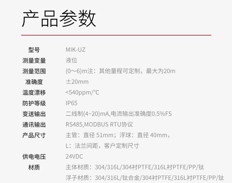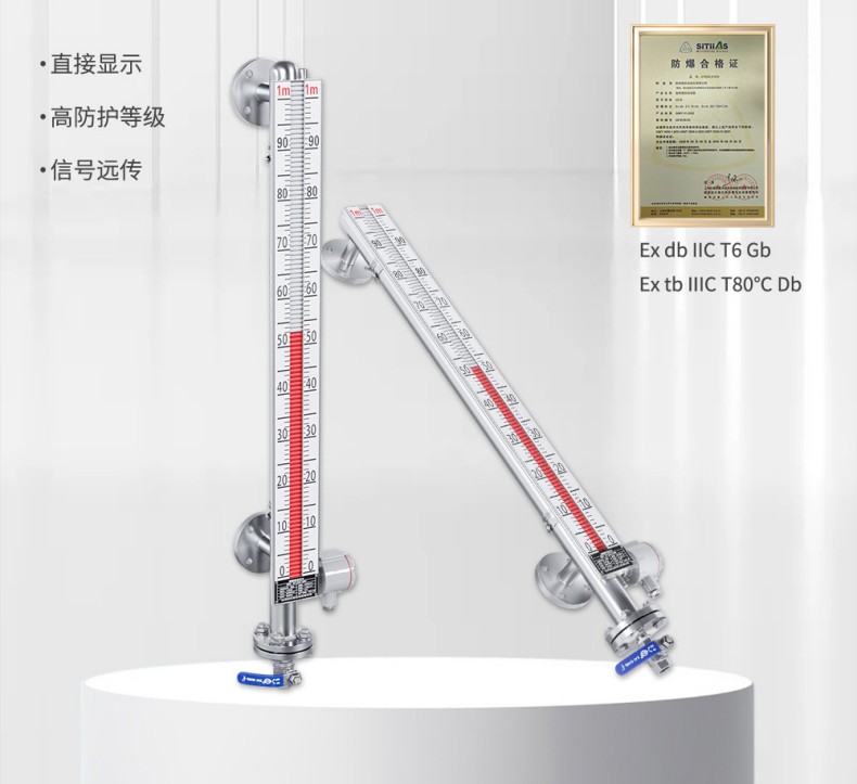 产品描述:磁翻板液位计根据浮力原理,实现液位的指示,并且在液位计的主体上安装变送器,可以实现远传显示。适用于低温到高温、真空到高压等各种环境,是石油化工等行业理想的液位测量产品。